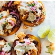Keywords: tostada recipe, cauliflower black bean, vegetarian tostada