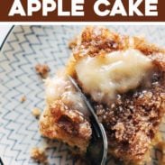 This simple cinnamon sugar apple cake is light and fluffy, loaded with fresh apples, and topped with a crunchy cinnamon sugar layer!