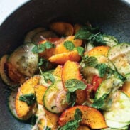 It’s a textural wonder: a gentle layering of juicy and slippery, flexible and foldy. We’ve got fresh cucumber, bitey shallots, cooling mint, and sweet fleshy peaches coming together in serious flavor harmony. The lime juice in there wakes it up and makes it feel extra summery, and the flecks of lime zest, salt, and pepper make it feel like something you’d eat at a nice restaurant. (Be right back, I’ve just convinced myself to make it again for lunch.)
